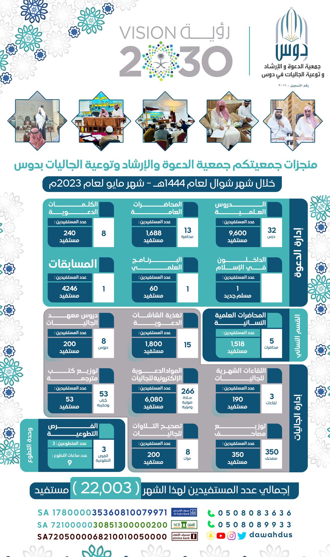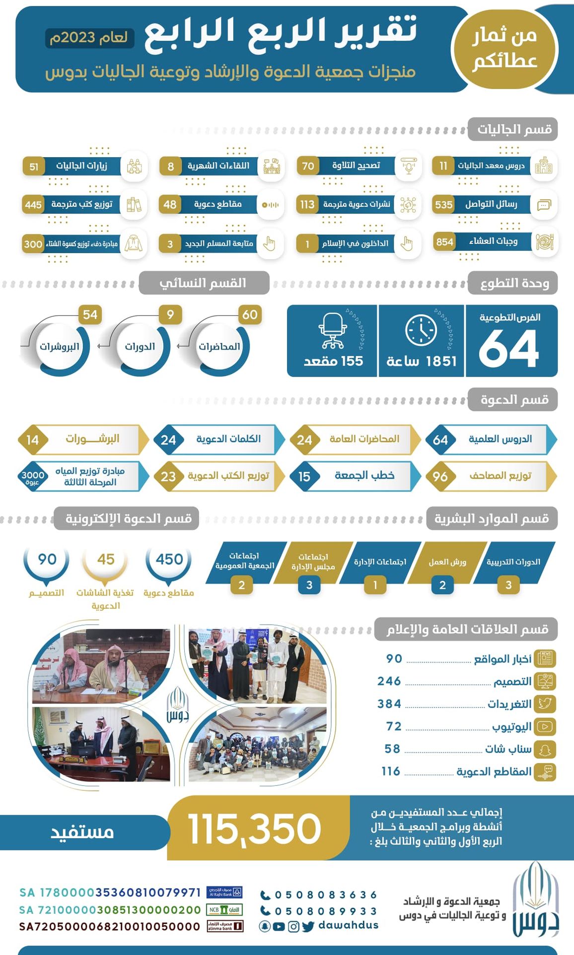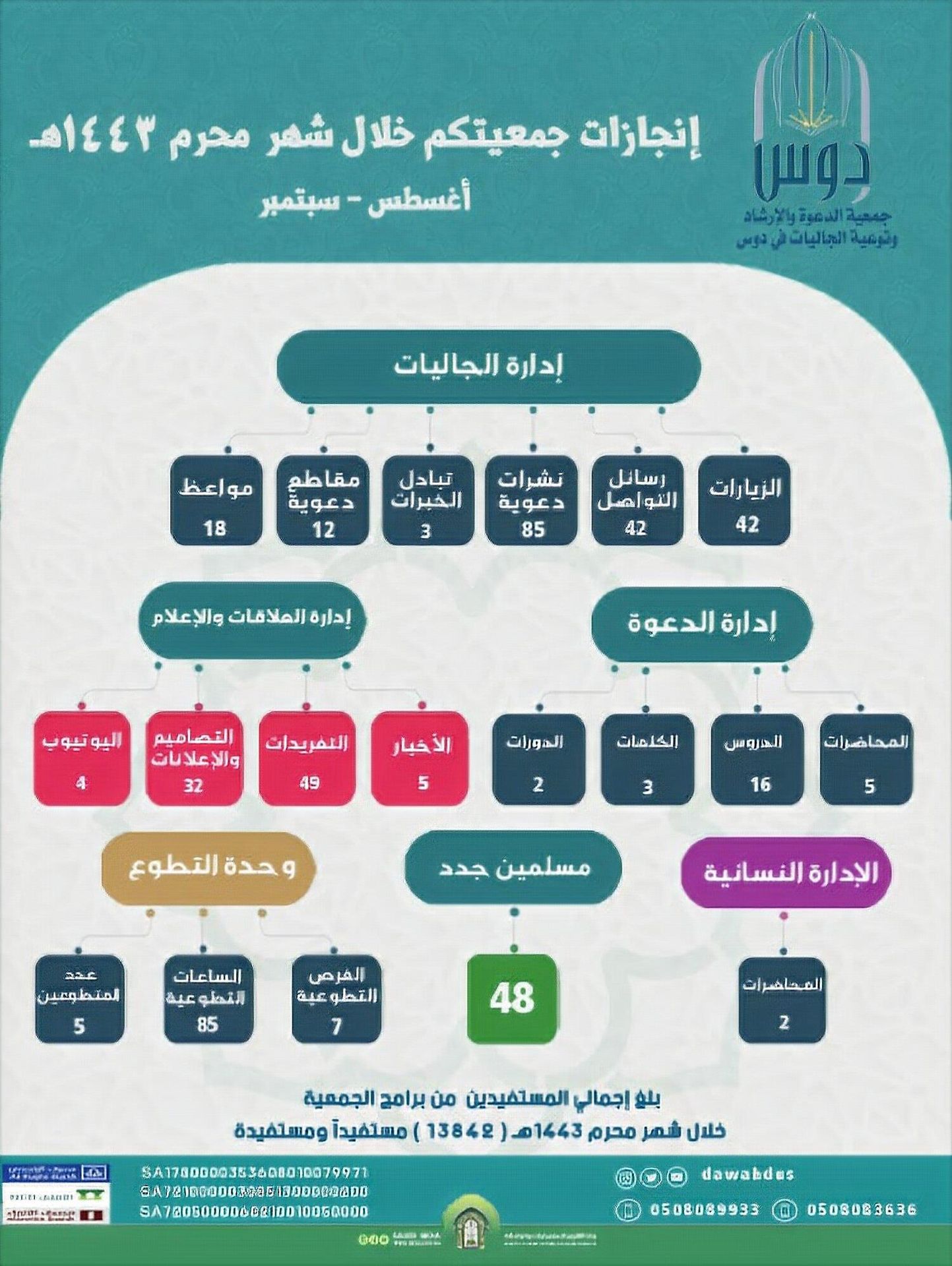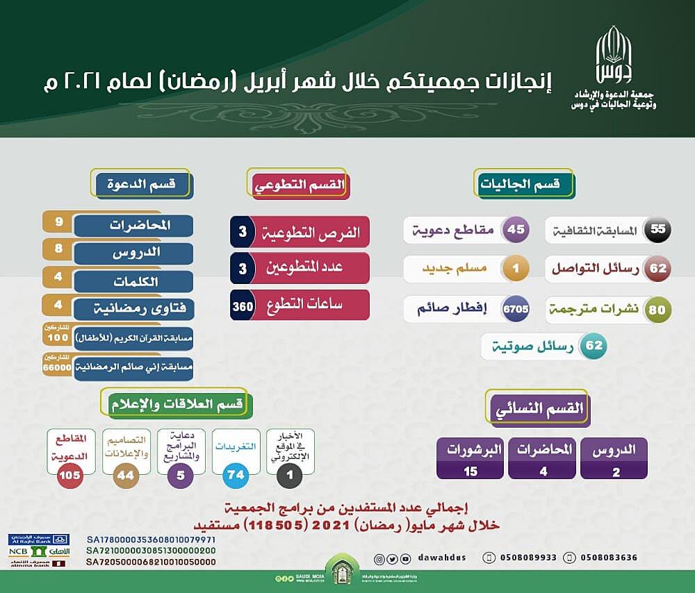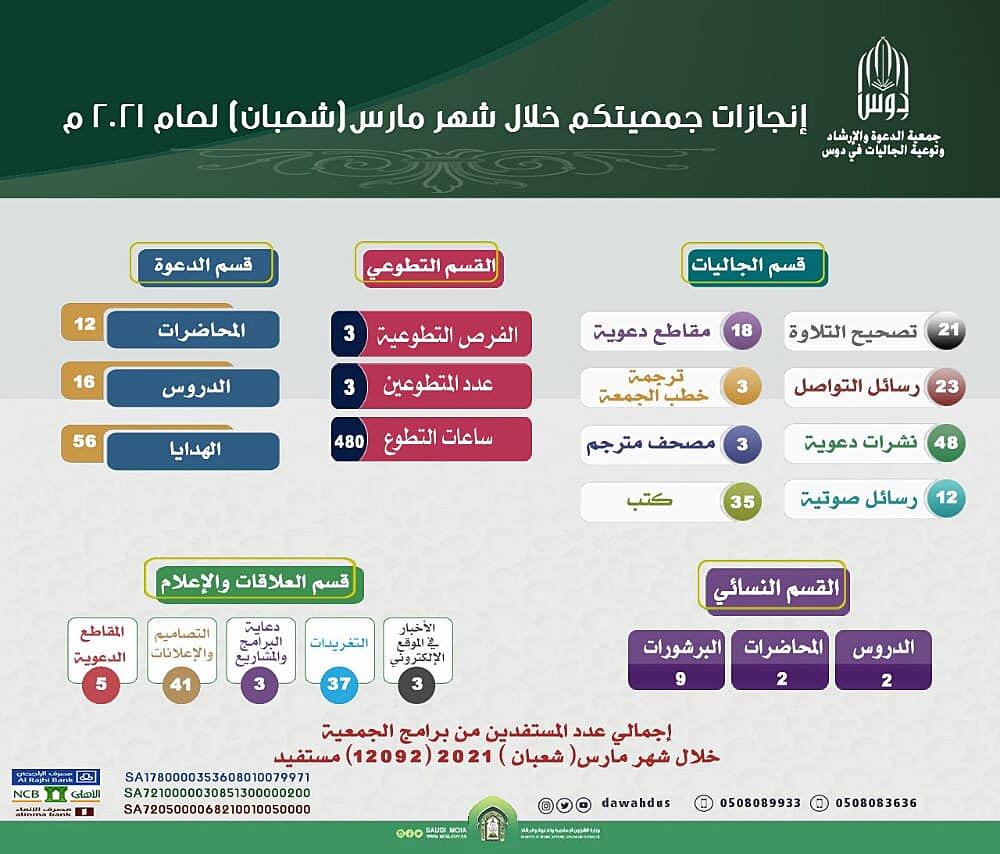نشر الإحصائيات المتعلقة بالخدمات التي تقدمها الجمعية في مواقع التواصل الاجتماعي للجمعية أو موقعها الإلكتروني